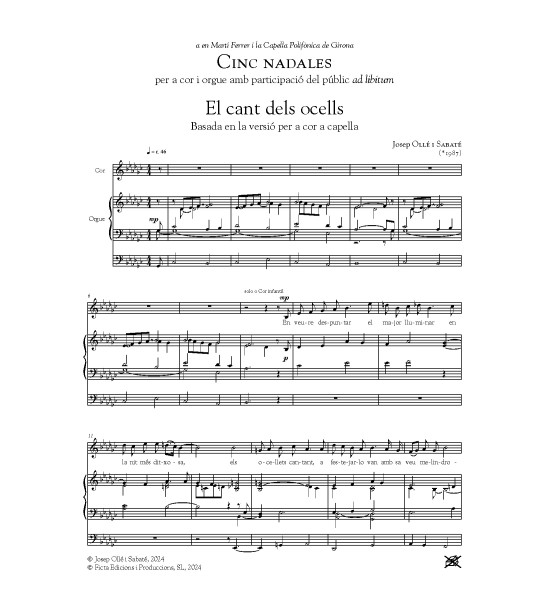 Cinc nadales per a cor (SATB) i orgue de Josep Ollé (n.1987)